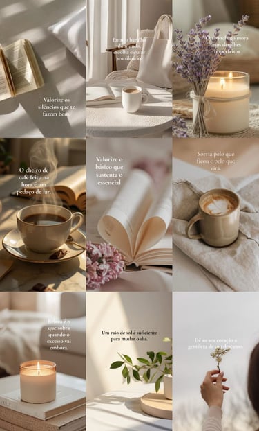 ✅ Uma curadoria com 100 fotos da coleção leveza já com frases para serem postadas ou então editadas por você, pelo Canva